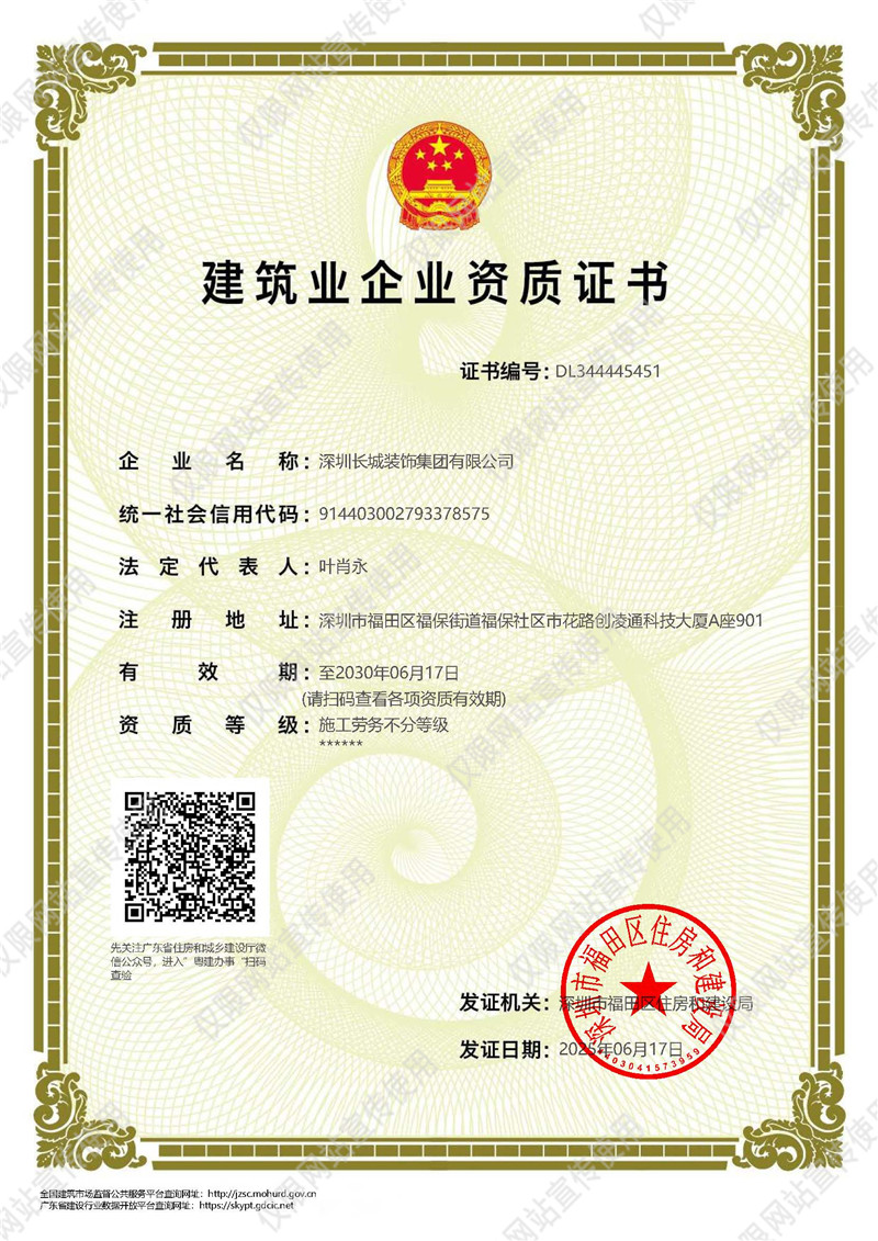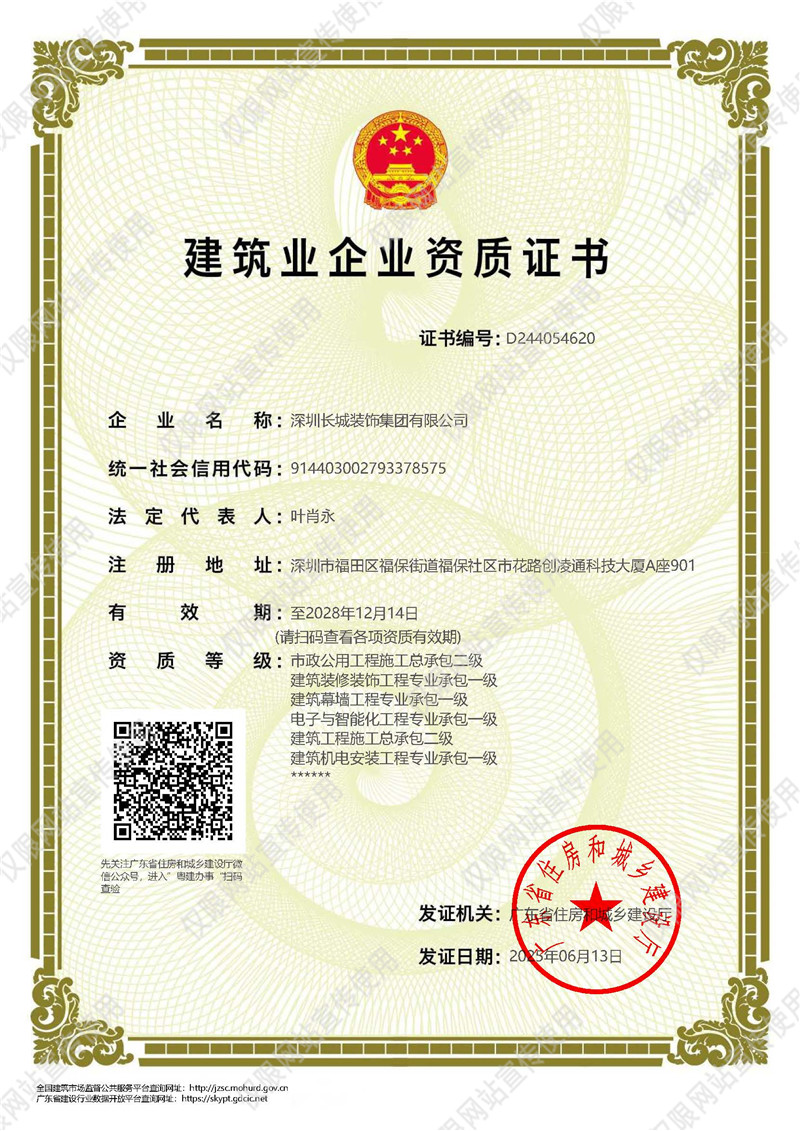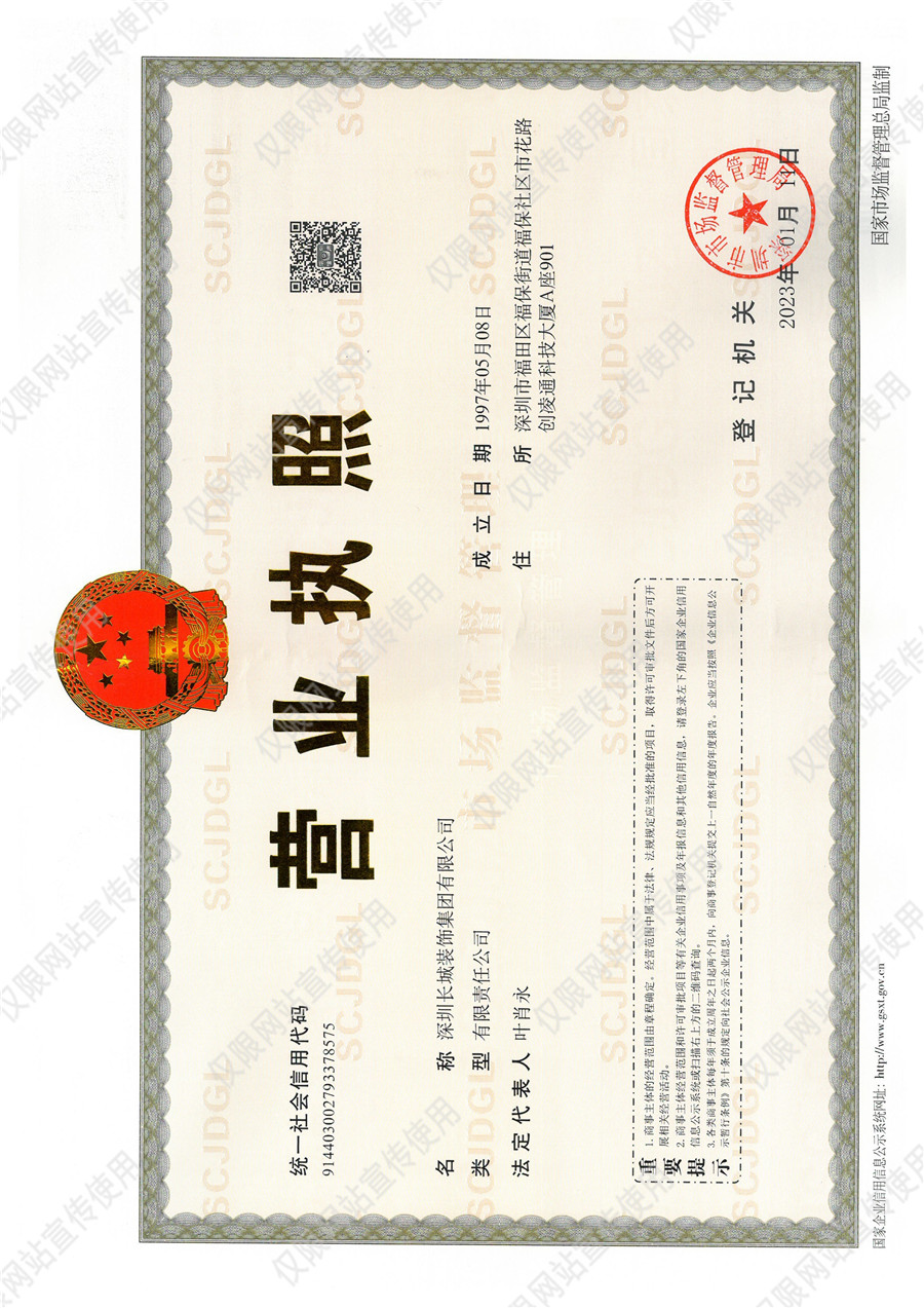 深圳長城裝飾集團有限公司營業(yè)執(zhí)照