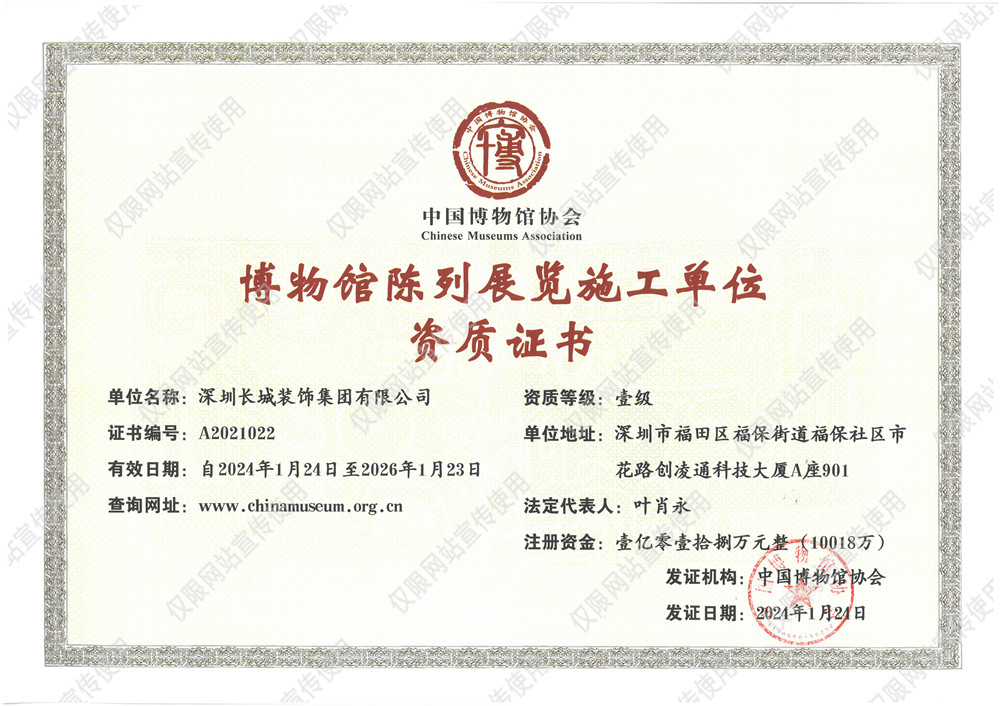 博物館陳列展覽施工單位壹級資質(zhì)證書
