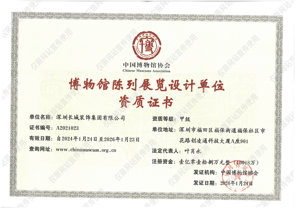 博物館陳列展覽設(shè)計單位甲級資質(zhì)證書