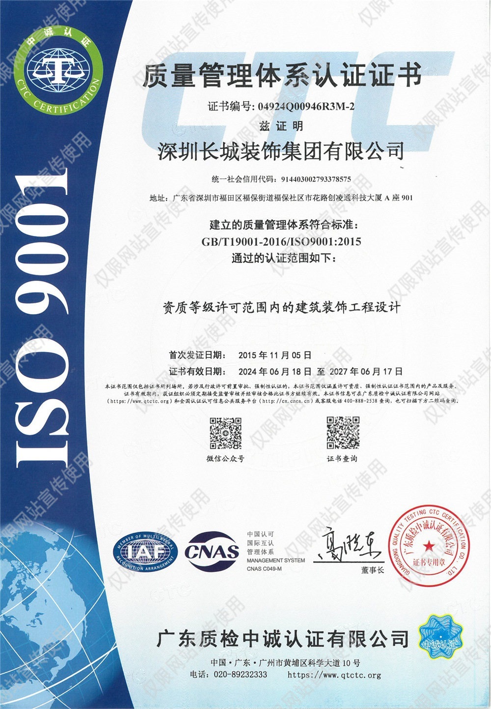 質(zhì)量管理體系認(rèn)證證書(工程設(shè)計)