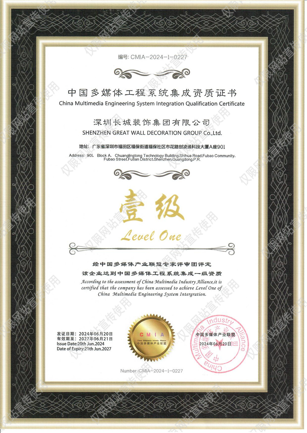 中國多媒體工程系統(tǒng)集成壹級資質(zhì)