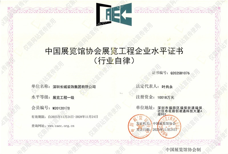 中國展覽館協(xié)會展覽工程企業(yè)水平證書