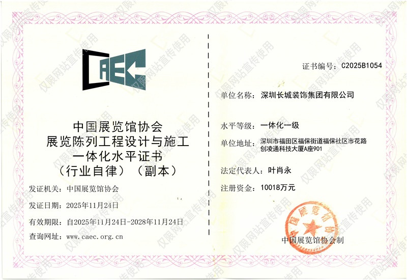 中國展覽館協(xié)會展覽陳列工程設(shè)計與施工一體化水平證書