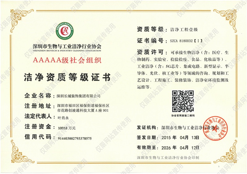 深圳市潔浄行業(yè)協(xié)會潔凈資質(zhì)等級證書