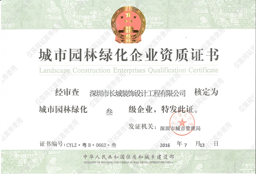 城市園林綠化三級企業(yè)資質(zhì)證書