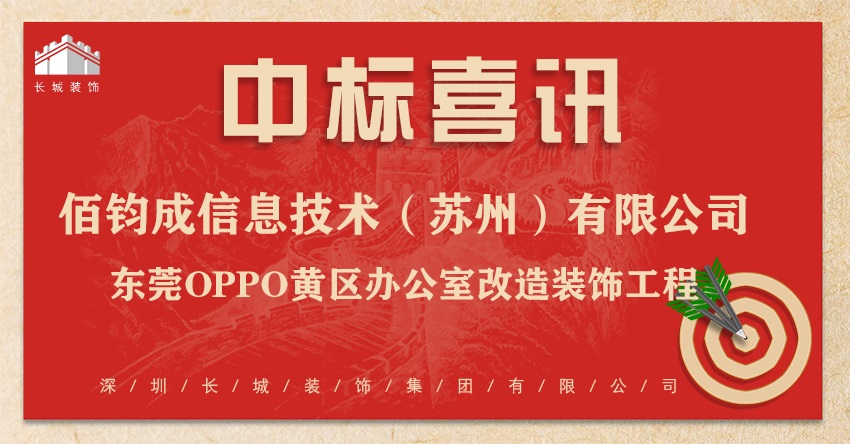 恭喜我司中標:佰鈞成信息技術(蘇州)有限公司-東莞OPPO黃區(qū)辦公室改造裝飾工程