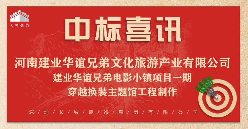恭喜我司中標:河南建業(yè)華誼兄弟文化旅游產(chǎn)業(yè)有限公司-建業(yè)華誼兄弟電影小鎮(zhèn)項目一期穿越換裝主題館工程制作
