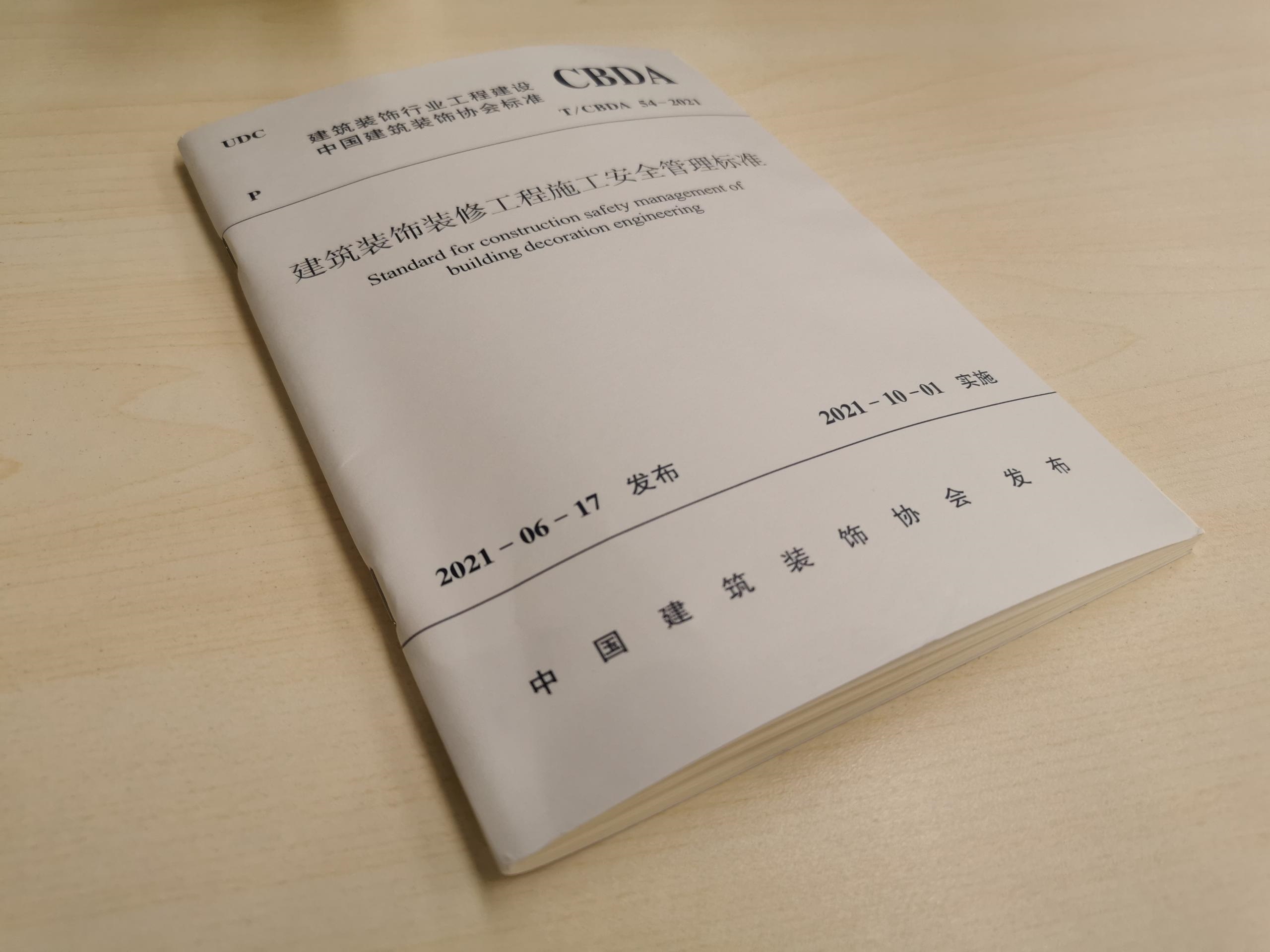 2021年6月17日,深圳長城裝飾集團參編的編號為T/CBDA 54-2021《建筑裝飾裝修工程施工安全管理標(biāo)準(zhǔn)》作為建筑裝飾行業(yè)工程建設(shè)中國建筑裝飾協(xié)會標(biāo)準(zhǔn)發(fā)布 ,將于2021年10月1日開始實施。