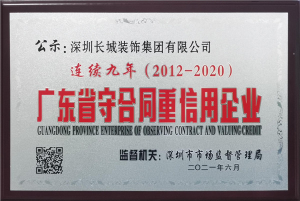 九年 | 深圳長城裝飾集團(tuán)連續(xù)榮獲“廣東省守合同重信用企業(yè)”榮譽(yù)