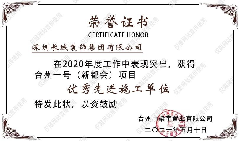 動(dòng)力 | 長城裝飾集團(tuán)榮獲“臺州一號項(xiàng)目優(yōu)秀先進(jìn)施工單位”榮譽(yù)稱號