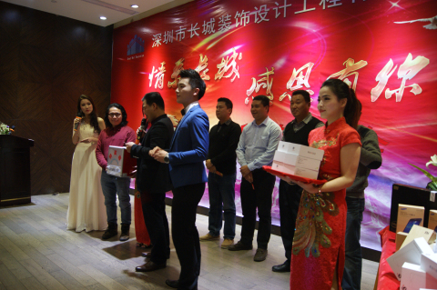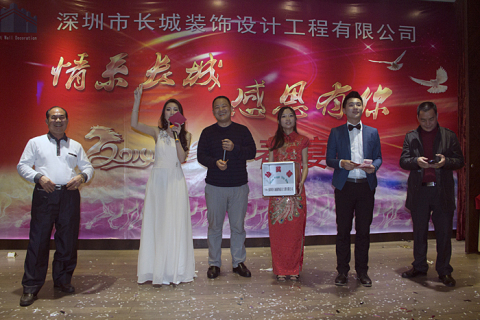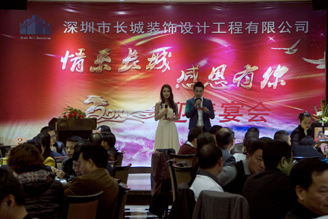 2014-2-17時光飛逝,歲月如梭,轉(zhuǎn)眼間忙碌的2013年已過去,充滿期待的2014年向我們走來。新的一年,孕育新的目標(biāo)和希望,長城裝飾2014年年會于2月16日在深圳綠景錦江酒店舉行。來自全國各地的客戶、嘉賓,公司董事、領(lǐng)導(dǎo)和員工,各大分公司負責(zé)人等歡聚一堂。 年會晚會現(xiàn)場充滿了激情、熱烈、活躍的氣氛。
