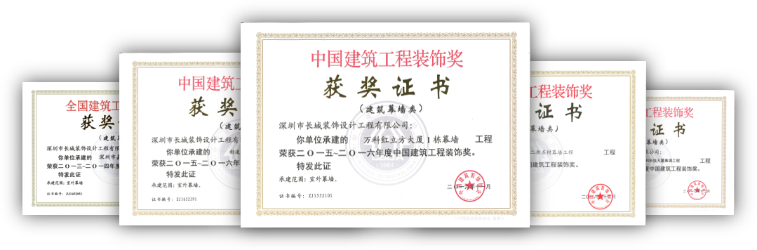 長(zhǎng)城裝飾集團(tuán)作為中國(guó)建筑幕墻百?gòu)?qiáng)企業(yè),多年來(lái)致力于幕墻工程項(xiàng)目的設(shè)計(jì)和施工,工程質(zhì)量水平得到客戶的充分認(rèn)可,包括:深圳市嘉安達(dá)大廈、創(chuàng)凌通科技大廈、萬(wàn)科紅立方大廈、恒裕濱城花園二期、萬(wàn)和科技大廈、江陰市人民醫(yī)院東院等項(xiàng)目榮獲中國(guó)建筑裝飾獎(jiǎng)等。