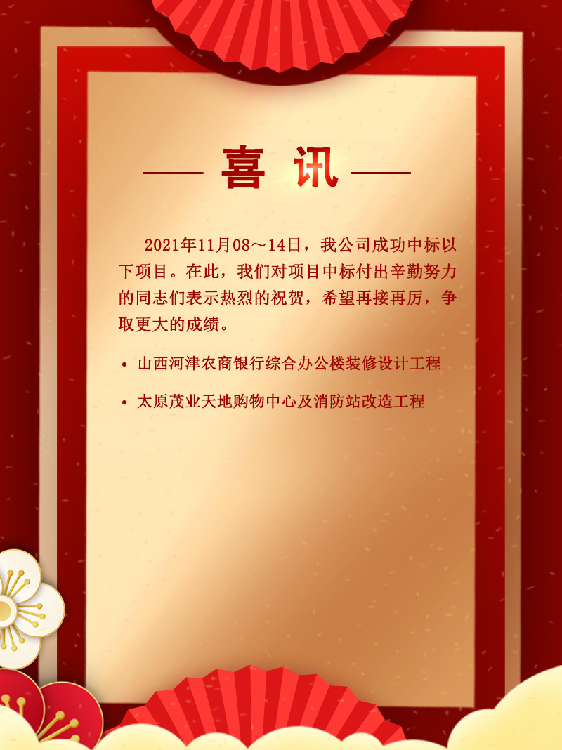 中標喜訊 | 長城裝飾集團工程中標項目(11月8日~11月14日)