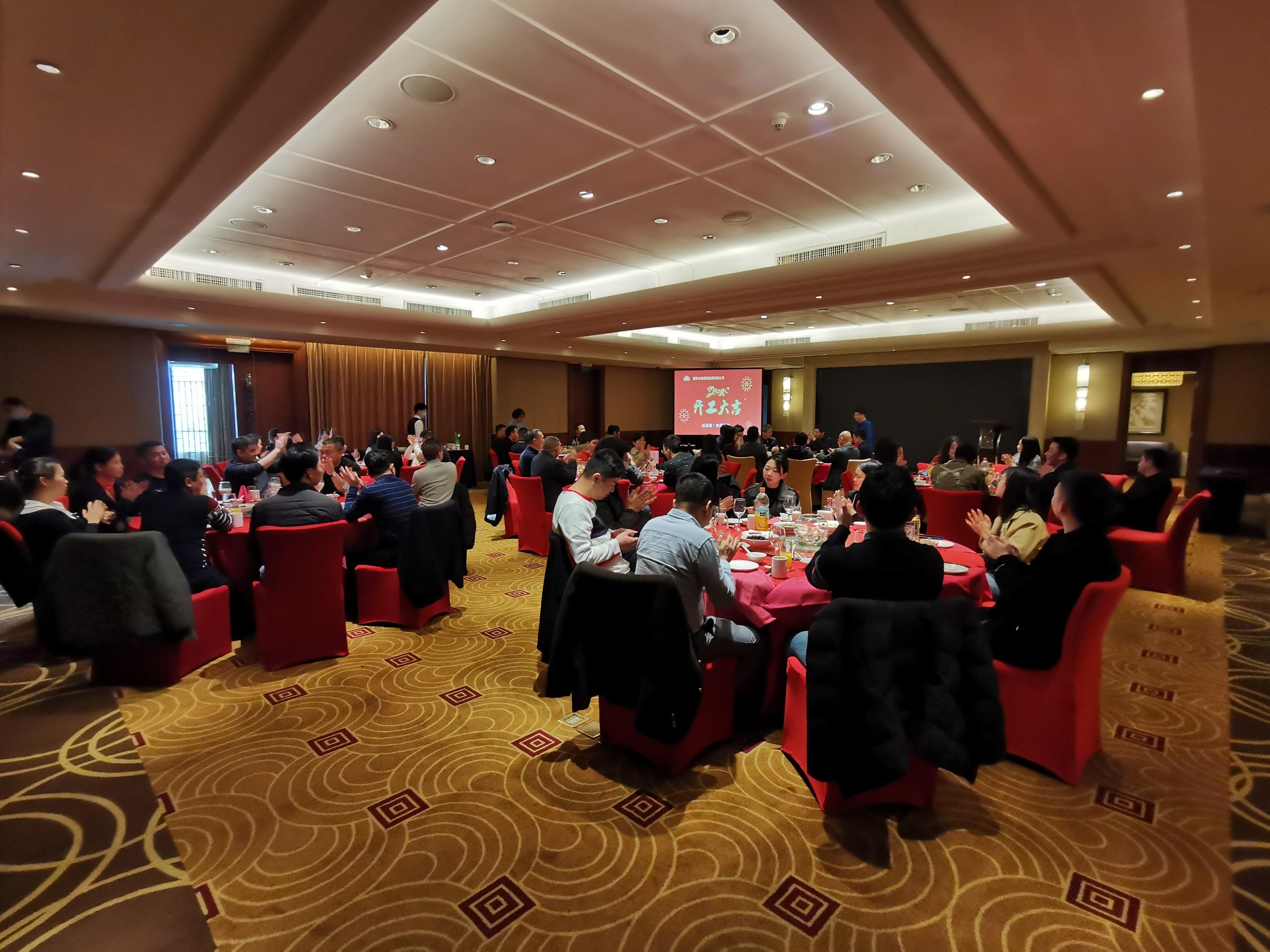 一派祥和喜慶的氣氛中,董事長(zhǎng)、總裁等管理層向每位員工派發(fā)“開(kāi)工利是”。傳遞著新春的喜悅,激勵(lì)著開(kāi)工的熱情。集團(tuán)還安排了全體員工聚餐活動(dòng)。董事長(zhǎng)在祝酒詞中鼓勵(lì)廣大員工2022年繼續(xù)努力,在集團(tuán)這個(gè)舞臺(tái)上實(shí)現(xiàn)人生價(jià)值,為集團(tuán)的發(fā)展貢獻(xiàn)力量。大家紛紛表示,2022年一定以集團(tuán)為家,勇于奉獻(xiàn),為集團(tuán)輝煌的明天做出最大貢獻(xiàn)!
