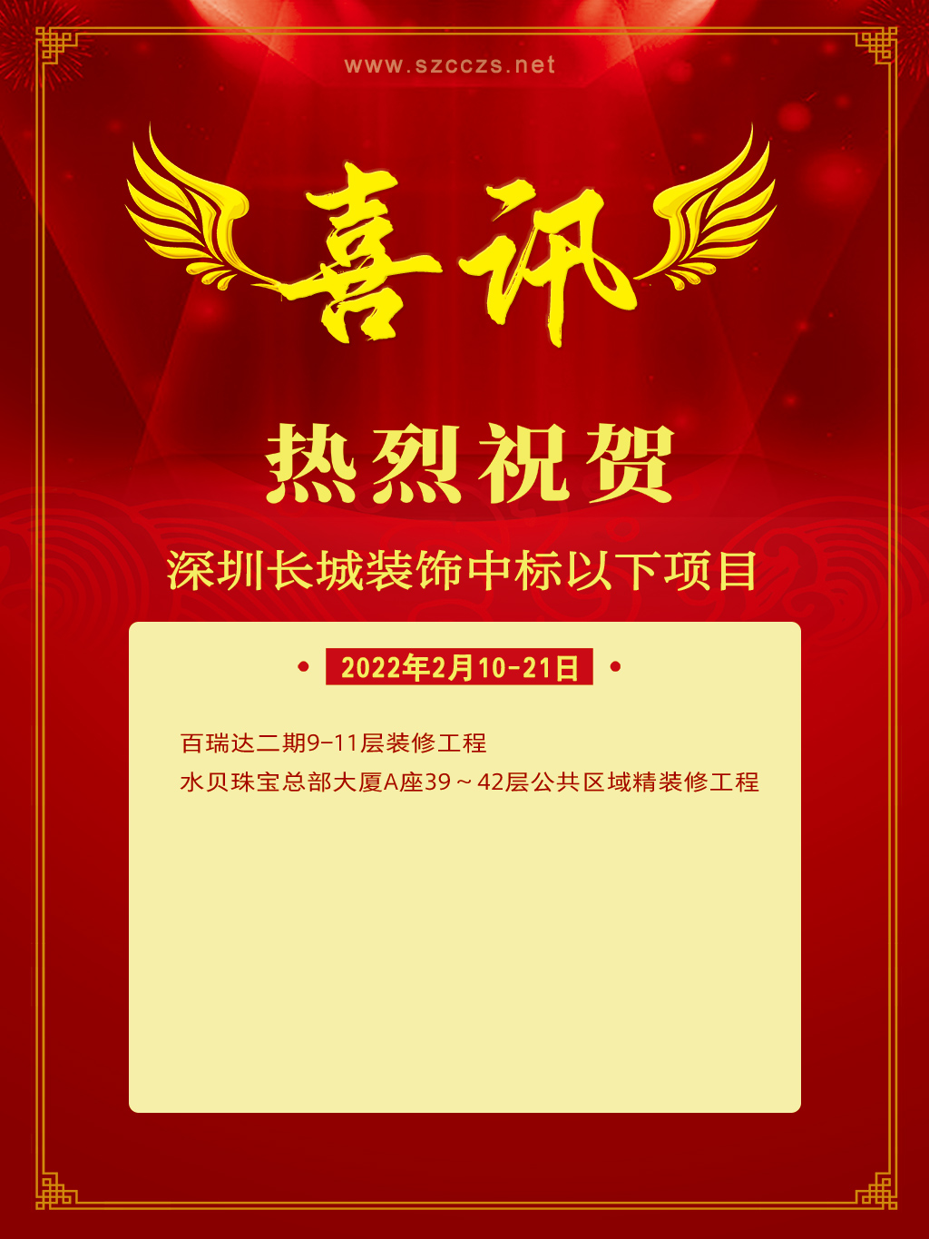 中標(biāo)喜訊 | 2月10~20日長城裝飾集團(tuán)工程中標(biāo)項(xiàng)目