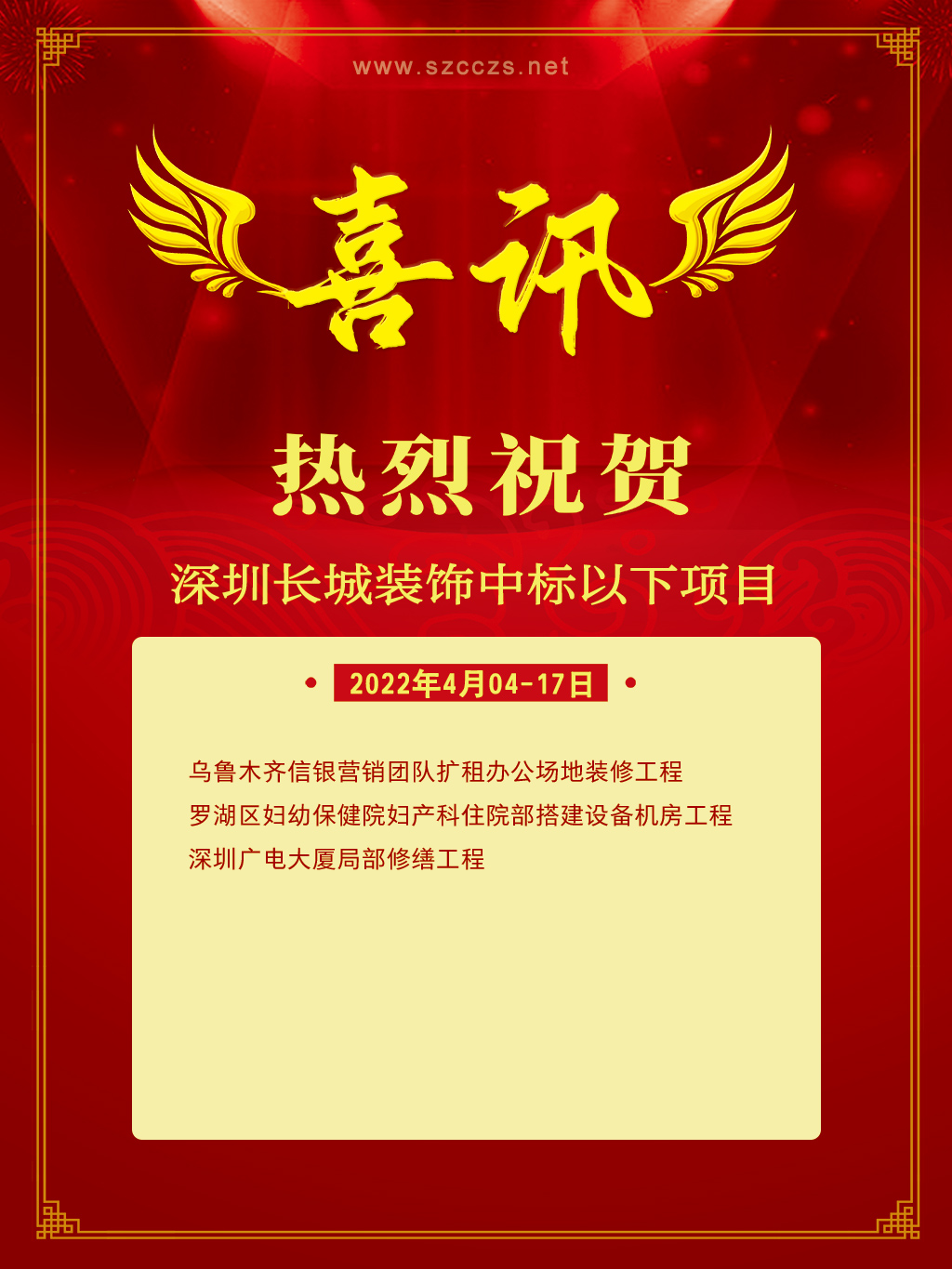 中標(biāo)喜訊 | 4月04~17日長城裝飾集團(tuán)工程中標(biāo)項目