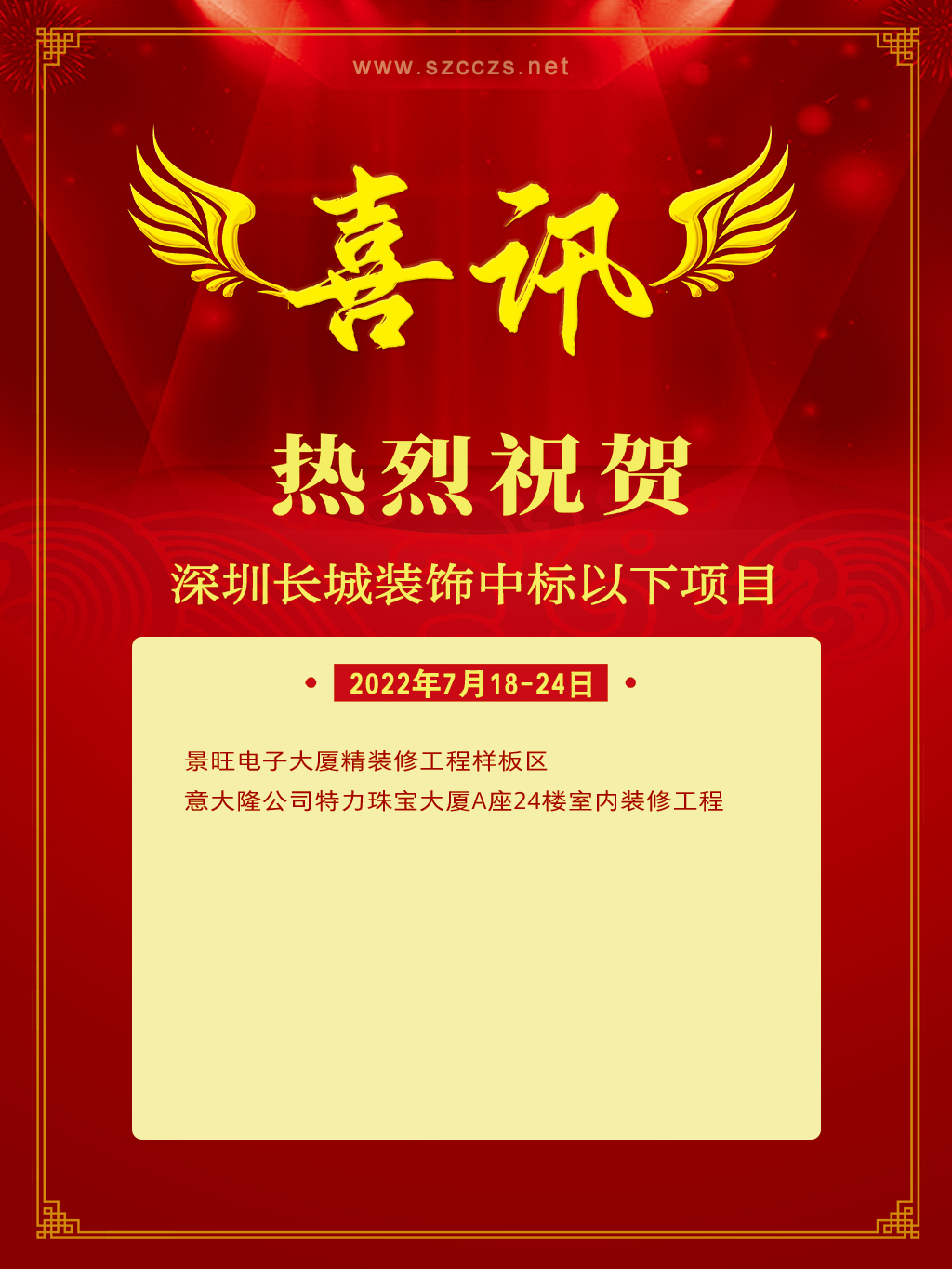 中標(biāo)喜訊 | 7月18~24日長城裝飾集團(tuán)工程中標(biāo)項(xiàng)目