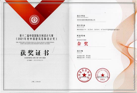 2022-10-25在金秋送爽的豐收時(shí)節(jié),第十二屆中國(guó)國(guó)際空間設(shè)計(jì)大賽作品經(jīng)過行業(yè)資深專家多輪評(píng)審,最終獲獎(jiǎng)名單正式揭曉。我司參賽作品“南約項(xiàng)目樣板房室內(nèi)設(shè)計(jì)”榮獲了第十二屆中國(guó)國(guó)際空間設(shè)計(jì)大賽居住空間類金獎(jiǎng)。