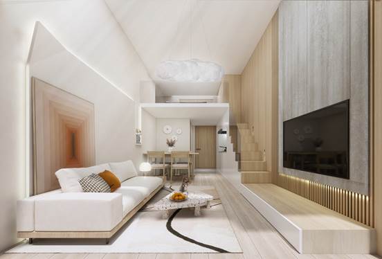 B2戶型:用簡(jiǎn)單的意念捕捉光線,自由而大膽的運(yùn)用色彩,空間明亮且熱烈。本案充盈著浪漫不羈的時(shí)尚元素,摒棄吹毛求疵的形式美,否定過分的堆砌和浮夸,通過清晰、簡(jiǎn)明的線條剪裁和素凈質(zhì)樸的家具搭配,形成一種別有情調(diào)的色彩組合,空間自由自在,歌詠?zhàn)匀唬瑹o(wú)須造作,本色呈現(xiàn)。