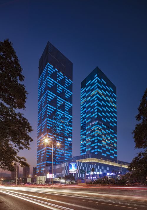 此次中標(biāo)項(xiàng)目為該中心A43F-50F玻璃幕墻改造。